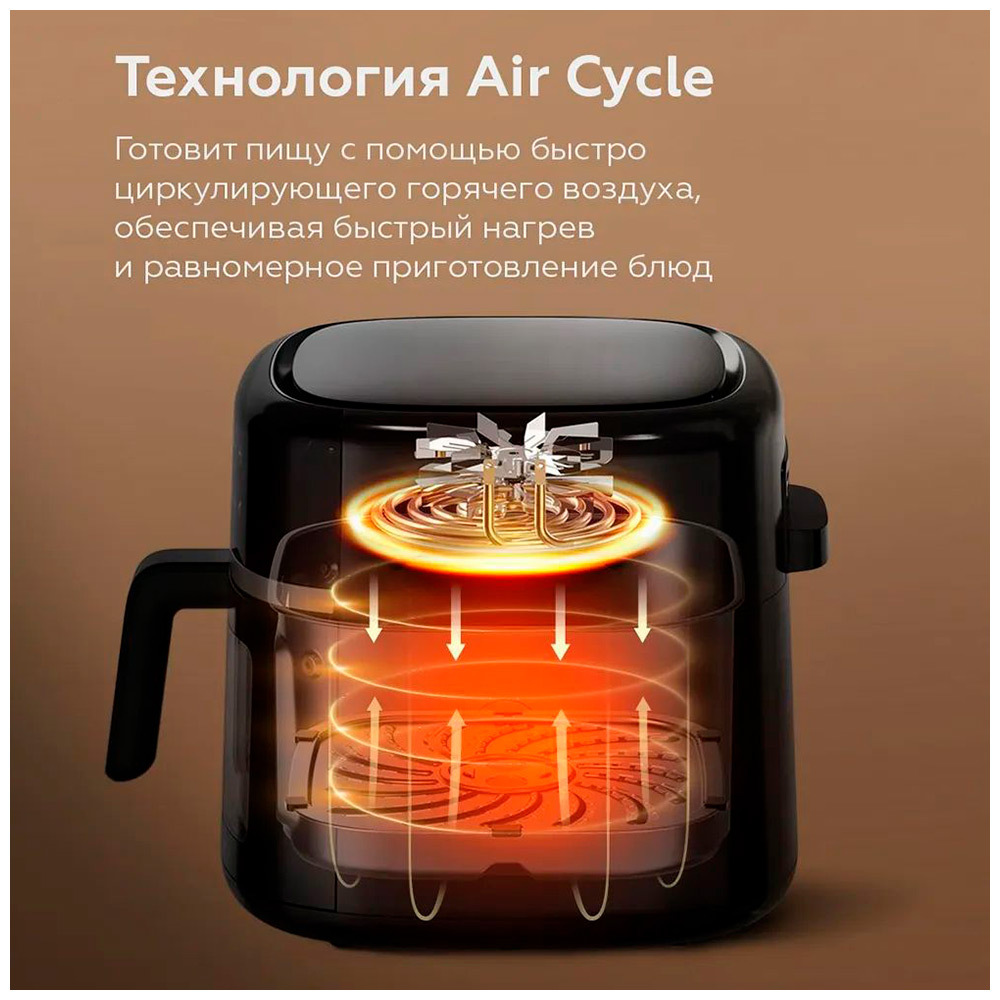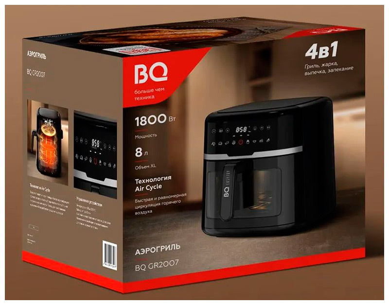 Откройте для себя новый уровень кулинарного мастерства с аэрогрилем BQ GR2007! Этот прибор впечатляет своей универсальностью и мощностью в 1800 Вт. Благодаря технологии Air Cycle, вы можете быстро готовить пищу с помощью циркулирующего горячего воздуха с минимальным количеством масла, сохраняя их натуральный вкус и полезные свойства. Блюда получаются хрустящими снаружи и нежными внутри.