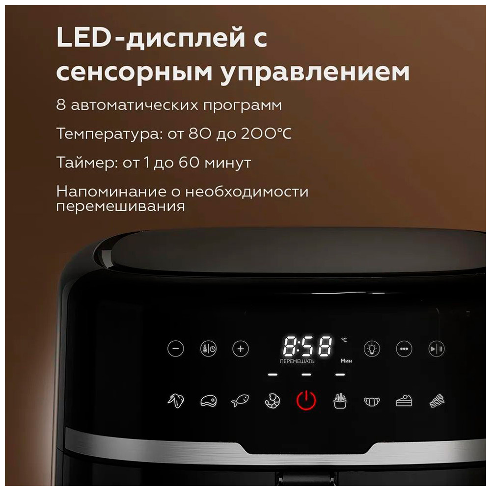 Этот аэрогриль станет незаменимым помощником на вашей кухне, сочетая в себе мощность, многофункциональность и удобство использования.