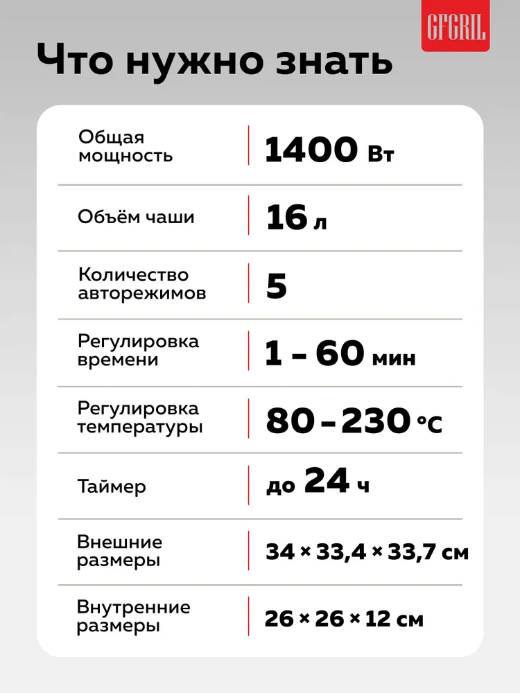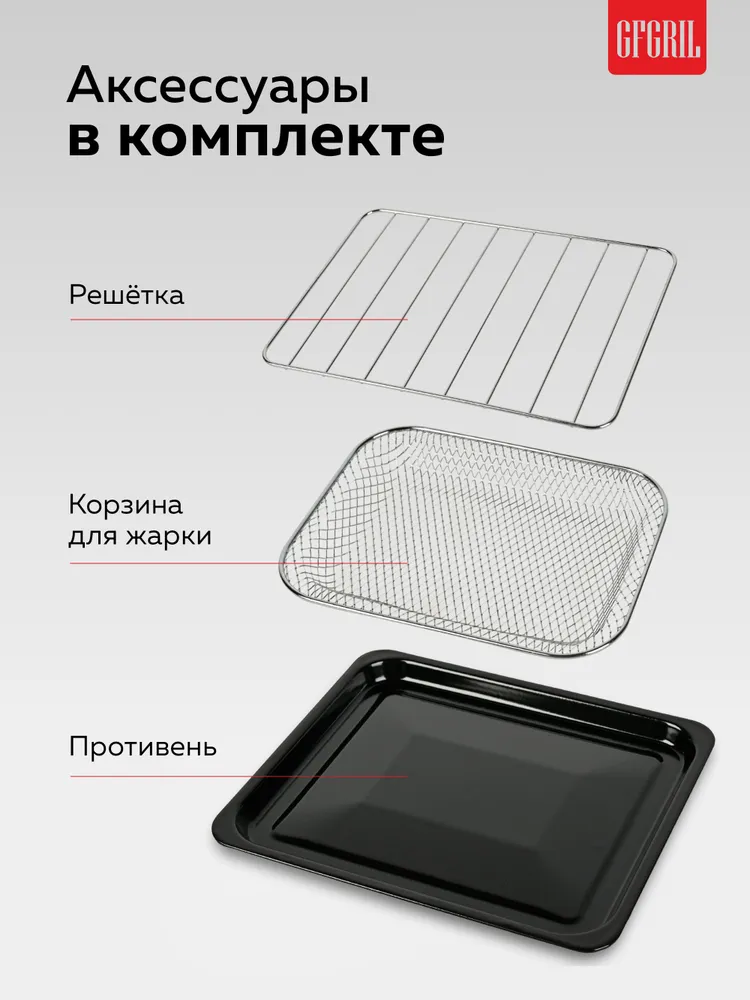 Комплектация - Мини-печь, Противень, Корзина для жарки, Решетка