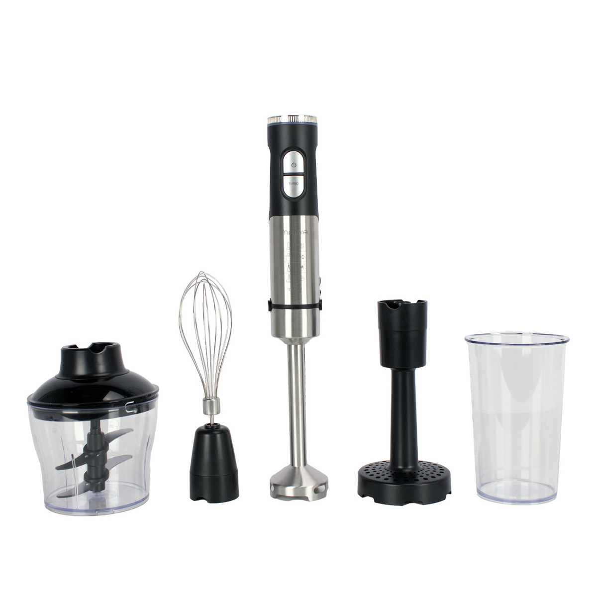 Комплектация - измельчитель, венчик, мерный стакан, насадка для картофеля