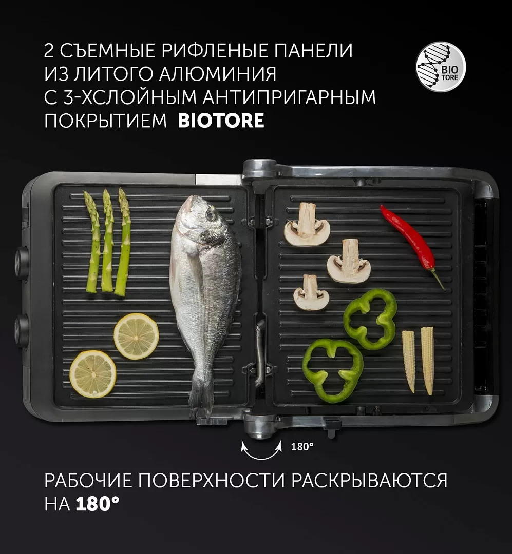 Рабочие поверхности имеют каналы для стекания жира в поддон.