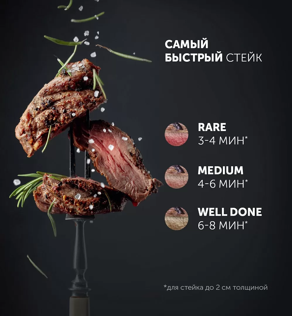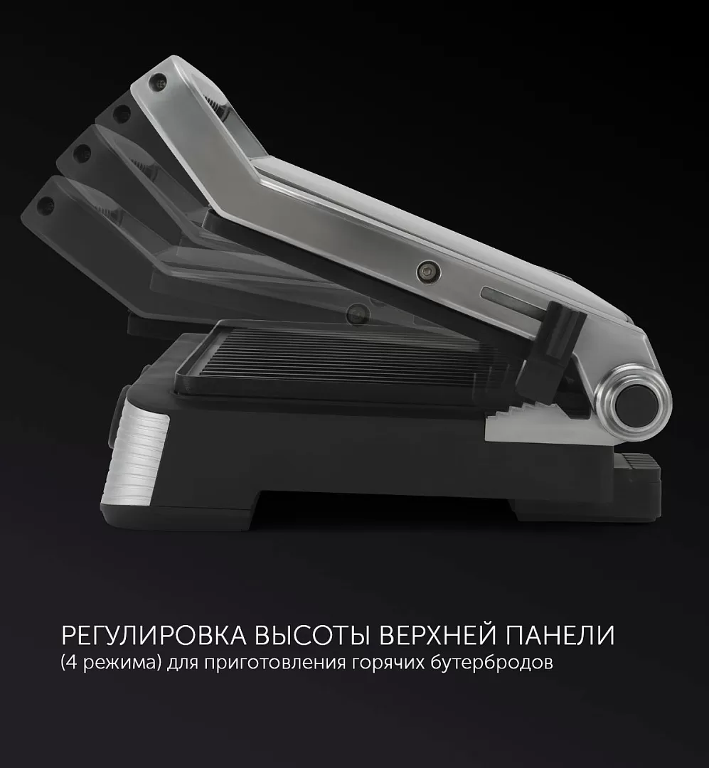 Регулировка высоты верхней панели (4 режима) - подходит для приготовления крупных стейков.