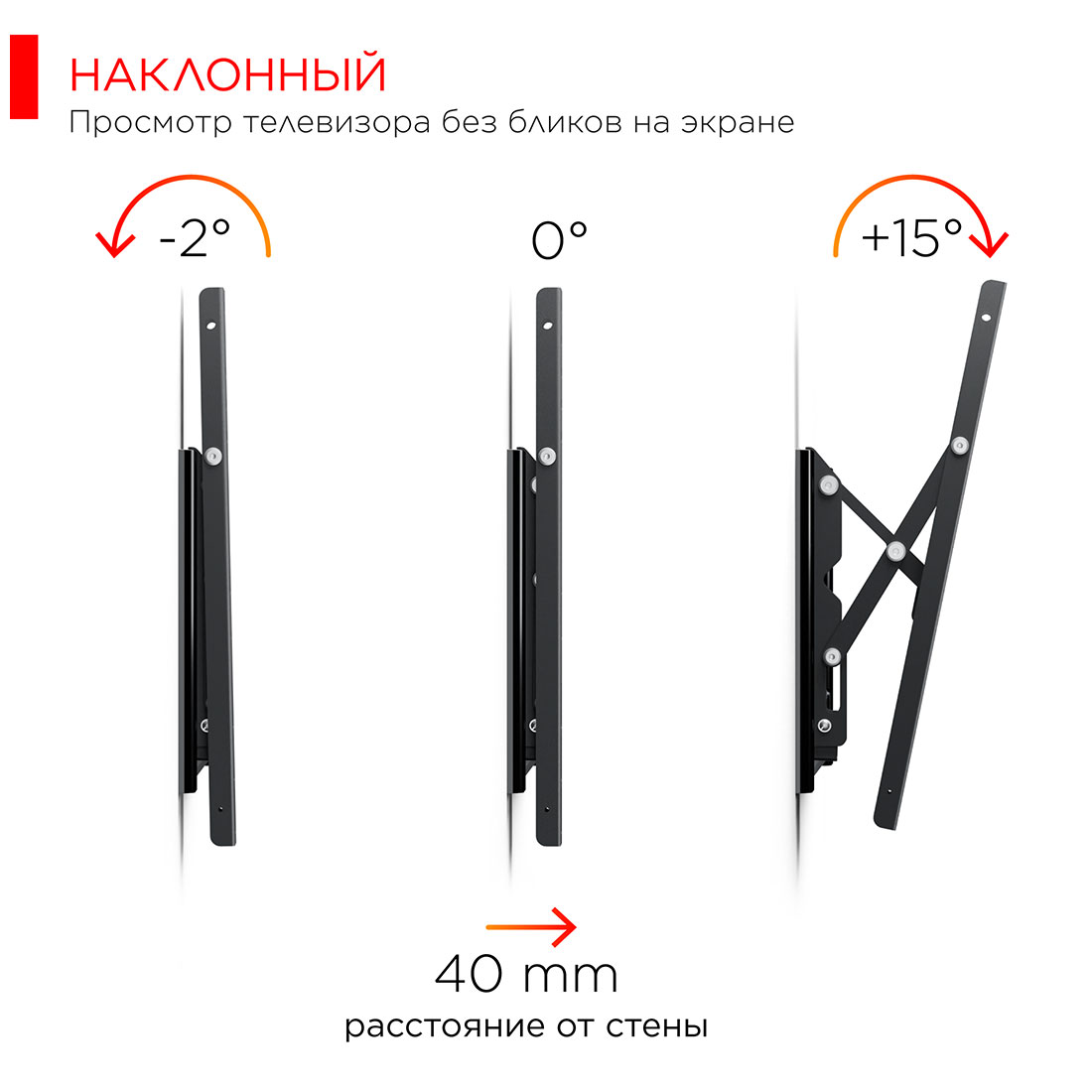 Расстояние от стены/потолка макс. - 40 мм