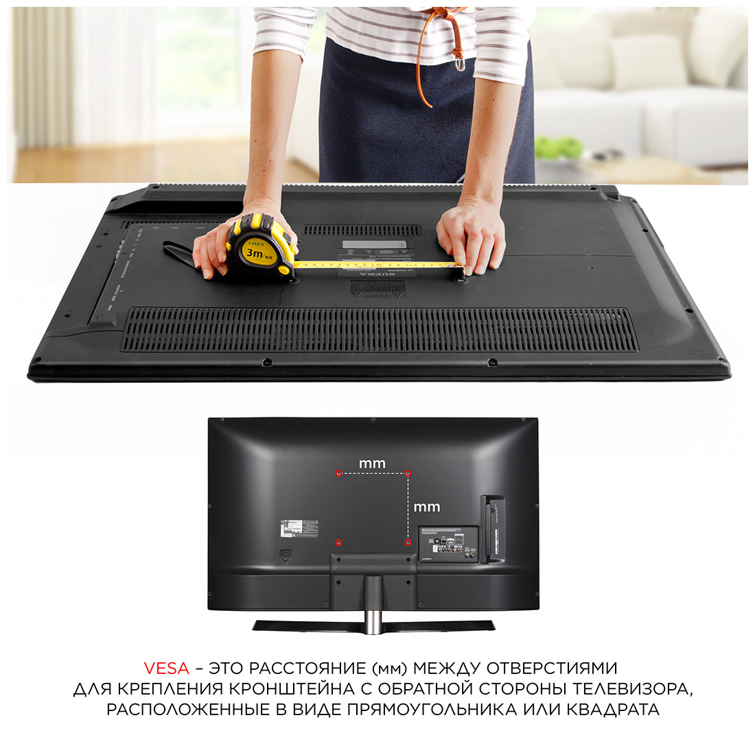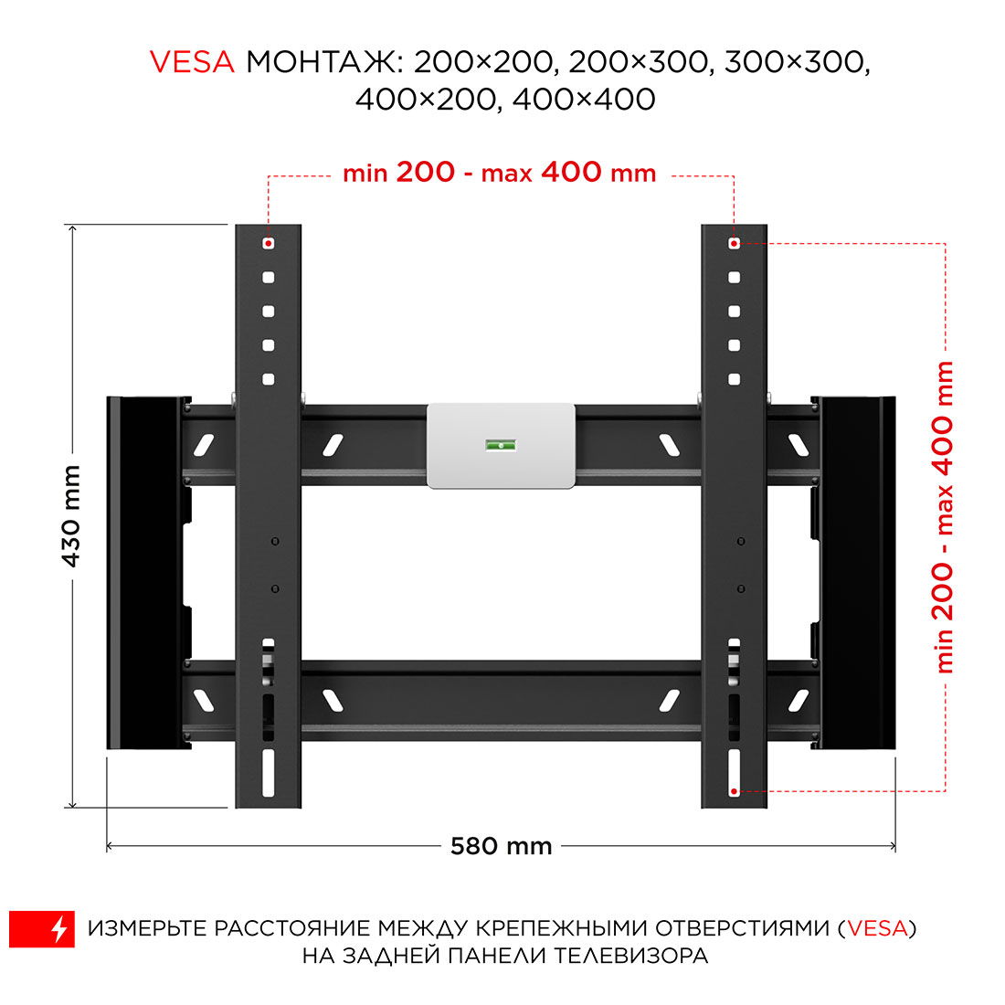 Стандарт крепления VESA - 200x200 мм, 200x300 мм, 300x300 мм, 400x200 мм, 400x400 мм