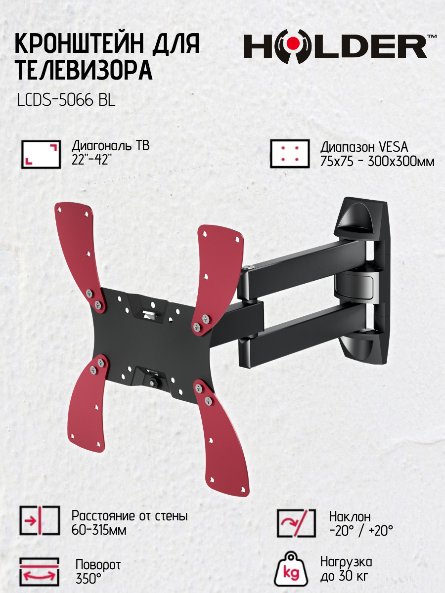 с диагональю от 19" до 40" и весом не более 30 кг