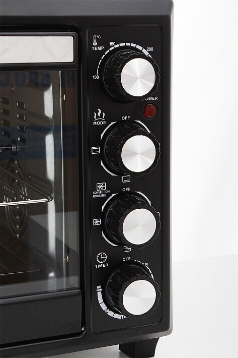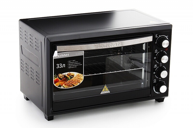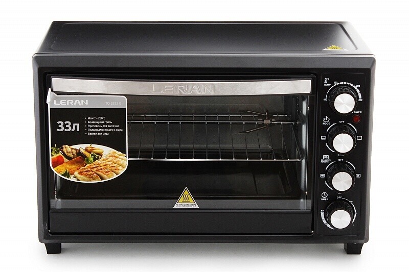 В комплекте - вертел, держатель для противня/решётки, поддон для сбора крошек, противень, решётка