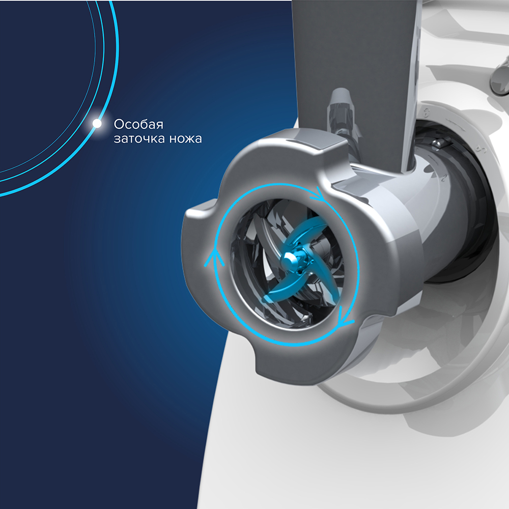 Высокое расположение шнековой камеры позволяет использовать глубокую чашку для фарша