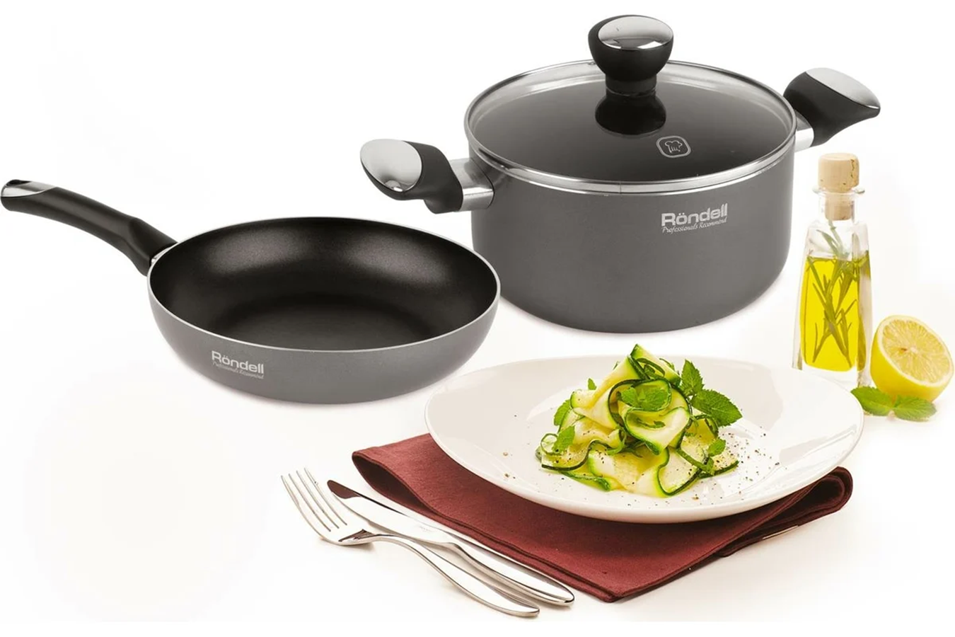 Аксессуары: Из бакелита, с покрытием SoftTouch / Прочные ненагревающиеся бакелитовые ручки со стальными вставками.