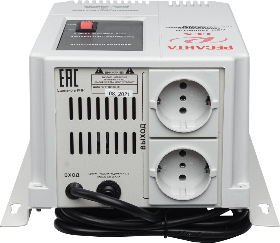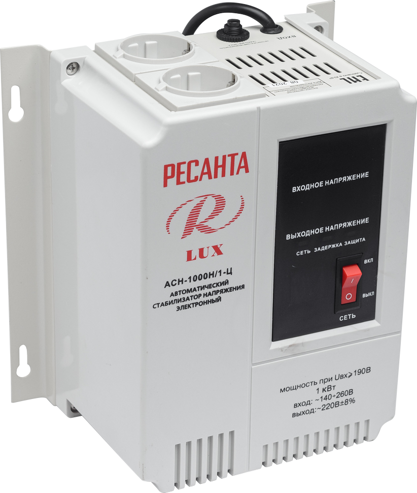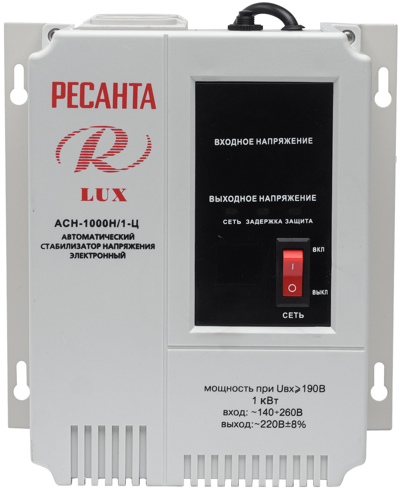 Комплектация товара Стабилизатор напряжения Ресанта АСН-1000Н/1-Ц Lux зависит от конкретной поставки и может меняться поставщиком без предварительного уведомления!