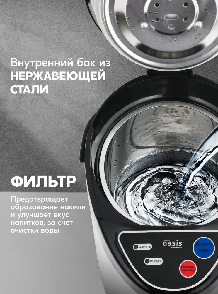 Термопот making Oasis everywhere сочетает в себе надёжность, безопасность и энергоэффективность. Это выбор, который сделает Вашу жизнь комфортнее.