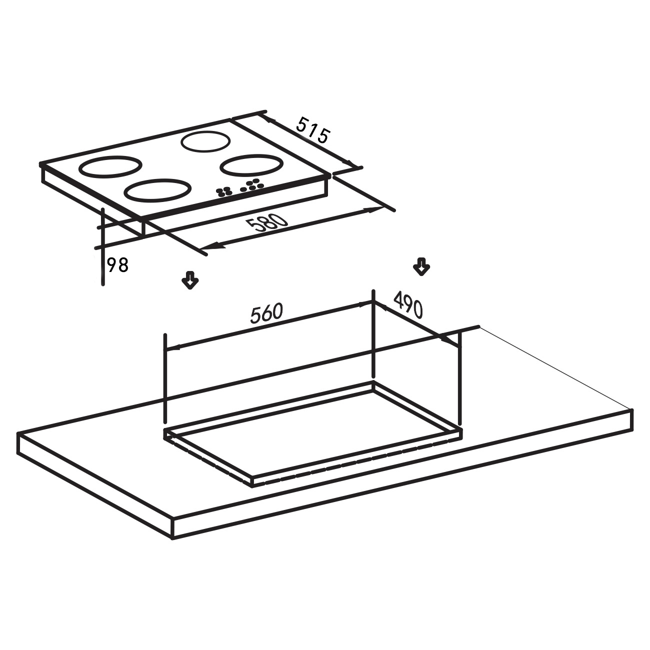 Размеры изделия, мм 580х515х98